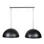 Hanglamp Ciamo 2L Charcoal is een karakteristieke 2-lichts hanglamp uit de collectie van HELDR!. Deze lamp heeft een landelijk uiterlijk waarbij de kappen voor de juiste sfeer zorgen. Uitgevoerd in metaal zijn beide kappen aan de binnenkant hetzelfde afgewerkt als aan de buitenkant. Dit geeft een super mooie weerkaatsing van het licht in de kappen en een mooie lichtval op tafel. Met een diameter van 60cm zijn de kappen opvallende elementen aan deze hanglamp. Verder heeft de balk een lengte van 90cm, een breedte van 8cm en een hoogte van 2,5cm. Ook beschikt de hanglamp over twee snoeren welke afzonderlijk van elkaar in hoogte verstelbaar zijn. Bovendien beschikt deze HELDR! hanglamp over een dimfunctionaliteit waarmee je kunt schakelen tussen verschillende lichtvolumes en daarmee functioneel én sfeervol licht in huis haalt. Op die manier creëer je een persoonlijke ambiance in je woonkamer of keuken. Deze hanglamp is geschikt voor (dimbare) led lichtbronnen en eventueel te dimmen via een externe wanddimmer (niet inbegrepen).