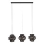 Hanglamp Suza 3L Zwart/Bruin is een zeer fraaie 3-lichts balk uit de collectie van HELDR!. Deze lamp, volledig hand gemaakt van metaal, heeft een landelijk uiterlijk waarbij de kappen zijn voorzien van handgewerkte gaatjes. Door deze handgewerkte gaatjes wordt de lamp semi-transparant, waardoor het licht sfeervol door de ruimte wordt verdeeld. Met een diameter van 35cm zijn deze handgemaakte kappen een opvallende verschijning. Daarnaast heeft de zwarte balk een lengte van 110cm, een breedte van 8cm en een hoogte van 3cm. Verder beschikt de lamp over een drietal snoeren van circa 120cm welke in hoogte verstelbaar zijn. Bovendien beschikt deze HELDR! hanglamp over een dimfunctionaliteit waarmee je kunt schakelen tussen verschillende lichtvolumes en daarmee functioneel én sfeervol licht in huis haalt. Op die manier creëer je een persoonlijke ambiance in je woonkamer of keuken. Deze hanglamp is geschikt voor (dimbare) led lichtbronnen en eventueel te dimmen via een externe wanddimmer (niet inbegrepen).