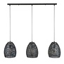 Hanglamp Tura 3L Zwart/Bruin is een enorm sfeervolle 3-lichts hanglamp uit de collectie van HELDR!. Deze volledig handgemaakte lamp, afgewerkt in een burned finish, heeft een industrieel uiterlijk waarbij de kappen voor de juiste sfeer zorgen. De ovale metalen kappen zijn voorzien van perforator gaatjes, waardoor het licht op een mooie manier door de ruimte wordt verdeeld. Met een diameter van 26cm en een hoogte van 33cm zijn deze kappen opvallende elementen aan deze hanglamp. Verder heeft de balk een lengte van 110cm, een breedte van 8cm en is deze 3cm hoog. Ook beschikt de hanglamp over drie snoeren welke in hoogte verstelbaar zijn tot een maximum van 150cm. Bovendien beschikt deze HELDR! hanglamp over een dimfunctionaliteit waarmee je kunt schakelen tussen verschillende lichtvolumes en daarmee functioneel én sfeervol licht in huis haalt. Op die manier creëer je een persoonlijke ambiance in je woonkamer of keuken. Deze hanglamp is geschikt voor (dimbare) led lichtbronnen en eventueel te dimmen via een externe wanddimmer (niet inbegrepen).