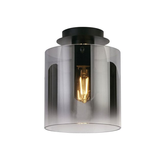 • Modern zwart armatuur – De zwarte afwerking geeft deze plafondlamp met rookglas een krachtig en eigentijds design dat perfect combineert met moderne en industriële interieurs.