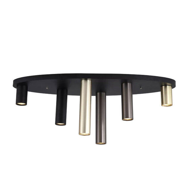 De Plafondlamp Tubes 6L Ovaal Zwart/Brons/Goud van Searchlight combineert een luxueus design met praktische functionaliteit. De ovale vorm en het strakke kleurenschema passen perfect in moderne en industriële interieurs, terwijl de zes GU10 fittingen je de vrijheid geven om de verlichting naar wens aan te passen. Of je nu op zoek bent naar heldere verlichting of sfeervolle lichtinval, deze lamp biedt de perfecte oplossing voor iedere ruimte.